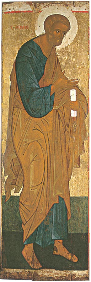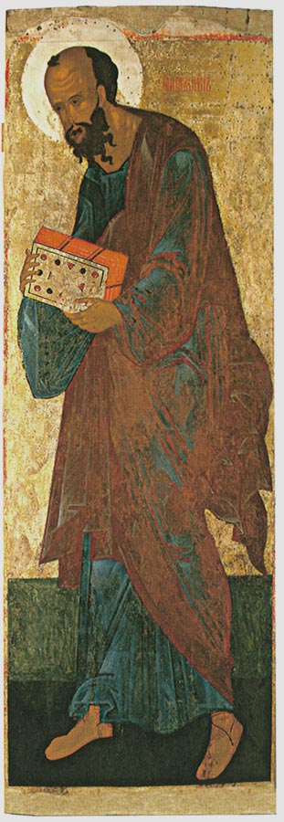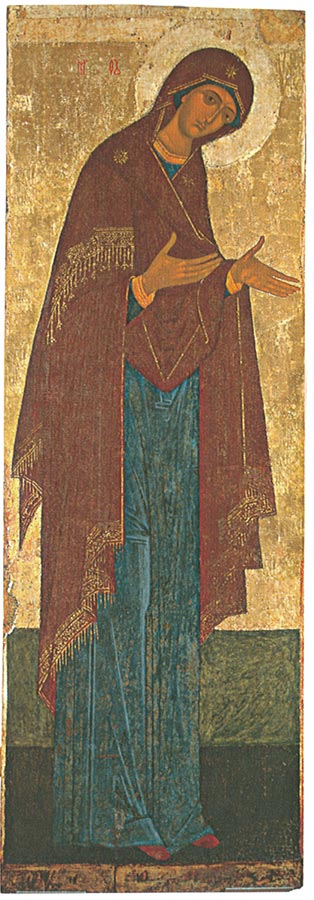 Следующая после Дионисия стадия развития московской живописи представлена в экспозиции деисусными иконами иконостаса Введенского собора Корнилиево-Комельского монастыря под Грязовцом (илл. 22-25).