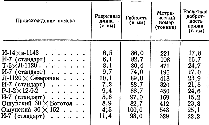 Правда, достоверность этой оценки невелика, так как у самого стандарта — сорта И-7 — отмечается слишком большое варьирование отдельных элементов качества волокна. Для получения более достоверных данных с определением средней точности показателей оценки качества волокна требуется двух-трехлетнее изучение селекционного материала. Это для номеров второго года селекции малоосуществимо, так как задержит продвижение лучших форм на третий год селекции и таким образом затормозит выведение новых сортов.