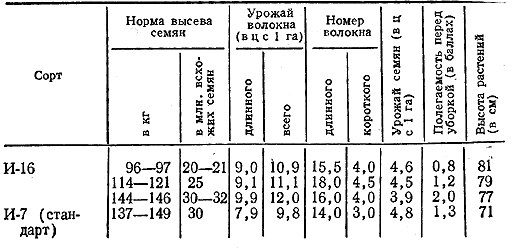 В отдельном испытании, по типу селекционного сортоиспытания, изучают вопросы сортовой агротехники наиболее перспективных селекционных номеров. Например, испытание селекционного сорта льна-долгунца И-16 при различных нормах высева семян помогло выявить его способность при пониженных нормах высева повышать устойчивость к полеганию и давать значительно больший урожай и более высокое качество волокна, чем стандарт — сорт И-7 (табл. 26).