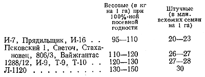 В качестве примерных могут быть рекомендованы по сортам следующие нормы высева семян: