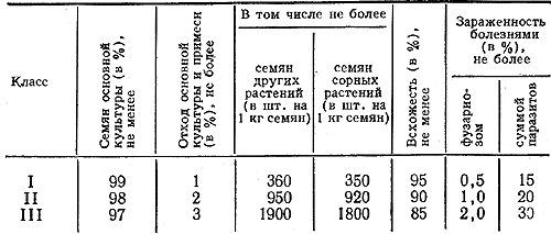 Семена, высеваемые в семеноводческих хозяйствах и на семенных участках колхозов и совхозов, а также отпускаемые для посевных целей со складов заготовительных организаций, по посевным качествам должны иметь показатели не ниже норм I класса. Только в некоторых случаях при отсутствии семян I класса разрешается высевать семена II класса.