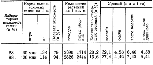 Посев семян с пониженной всхожестью обычно дает низкий урожай, даже тогда, когда их высевают с увеличенной нормой, с учетом посевной годности. Иллюстрацией этому может служить опыт ВНИИЛ (табл.62).