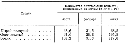 Сорняки извлекают из почвы значительное количество питательных веществ, причем чаще всего в большем количестве, чем лен и другие культурные растения (табл. 74).