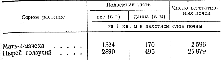 Некоторые сорняки, кроме семян, размножаются подземными органами — отпрысками корней (щавелек, осот полевой желтый, бодяк), корневищами (пырей ползучий, хвощ полевой, тысячелистник, крапива). Запасы в вегетативных органах у них очень большие (табл. 76).