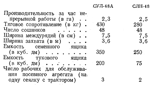 Сеялками СУЛ-48А и СЛН-48 можно высевать, кроме семян льна, гранулированные удобрения вместе с семенами, семена зерновых культур. Туковый ящик этих сеялок может быть использован для высева семян трав.