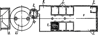 8 — решетчатый пол; 9 — утрамбованный грунт.
