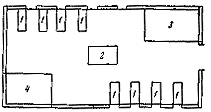 1 — сортировальные столы; 2 — весы; 3 — место для несортированной тресты;