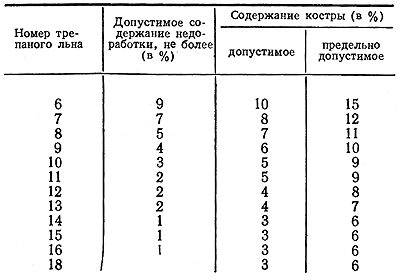 Трепаный лен № 20 и выше оценивается органолептически, без определения недоработки и костры.