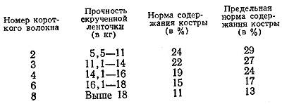 Оценка льняного короткого волокна (ГОСТ 9394—60). Льняное короткое волокно в зависимости от качества подразделяется на следующие номера: 12, 10, 8, 6, 4, 3 и 2. К волокну номеров 8, 6, 4, 3 и 2 предъявляют следующие требования: