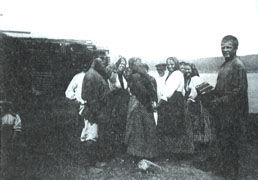 "жикет", а на голове белая шерстяная шаль. Поются песни, уничтожаются подсолнечники. Парни называют девиц барышнями, угощают лакомствами, а барышни