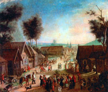 | А. А. Попов. Балаганы в Туле на Святой неделе. 1873 | Русский раек. Лубок. 1858 |