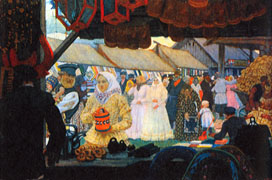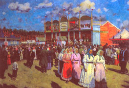 | Ярмарка. Фото. Начало XX в. | Б. М. Кустодиев. Ярмарка. 1906 |
