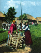 | Угощение. Фото. 1870-1880-е. Нижегородская губ. | Деревенские девушки. Фото. Начало XX в. |