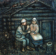 Во многих деревнях считалось вполне допустимым, чтобы парень оставался у девушки ночевать и после так называемого сидения или домовничанья. Поздним вечером, когда все в доме уже спали, парень приходил к своей почётнице на «сидение» и развлекал ее беседой, пока она вышивала, плела кружева. Если родители ложились спать в другом помещении, то парень, воспользовавшись случаем, укладывался с ней на полати «для игры». На домовничанье девушка приглашала парня, когда ее родители уезжали из дому, а она оставалась в доме за хозяйку. В селе Фетиньино Вологодской губернии домовничанье проходило так: «Девка, оставшаяся домовничать... называет нескольких подруг, избранных, и в то же время извещает и своего „избранного", чтобы он явился на домовничанье. Таким образом, на домовничанье бывает один парень – „игровой" домовницы. На домовничанье дается угощение – пьют чай и ужинают, а к ужину домовница запасает и водочки для „своего". Во время домовничанья так же, как и на посиделках, девицы занимаются плетением кружев, а парень играет на гармошке и любезничает с домовницей... Во время любезничания парень сидит у девки на коленках, обняв одною рукою ее шею, другую запустивши в груди, девка же напевает песни, направленные к нему, вставляя в песни имя сидящего на коленках. Песни подпевают и прочие домовницы. Однако парень не оставляет без внимания и этих последних, так же заигрывая, как и с „игровой". Домовничанье кончается за полночь, и парень нередко остается на ночь, ложась спать неподалеку от девки» (АРЭМ, ф. 7, оп. 1, д. 126, л. 4). Иногда ночевка парня со своей любезной кончалась его паническим бегством при неожиданном появлении родителей девушки. Один вологодский парень рассказывал: «Раз узнал я, что девка, с которой я любился, спит в избе одна. Забрался я к ней в ночи, залез на полати и полеживаю. Приди же на ту пору ее отец спать в ту же избу и на полати тоже. Я с краю у печи, она пришлась на середине, а он у вольного краю. Я лежу, не шелохнусь и думаю себе: как старик уснет, тот же сейчас и задам дёру. Только и покажись старику студено что-то. Он и говорит девке: „Марья! Пусти-ка меня поближе к печке", а та и сказывливает: „Тутотко места совсем мало – негде будет упоместиться". – „Полно-ка врать-то, пусти!" Вижу я, что мне несдобровать; я не помню и как с полатей-то соскочил, да и дралова» (Иваницкий Н. А. 1890. С. 66).