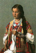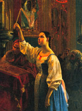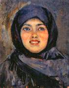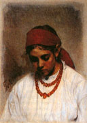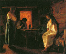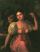 | Ф. С. Журавлев. У знахарки. 1867 | П. П. Чистяков. Этюд для неоконченной картины «Свидание». 1873-1874 |