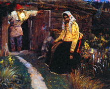 | А. И. Корзухин. Сцена в лесу. 1874 | М. В. Нестеров. За приворотным зельем. 1888 |