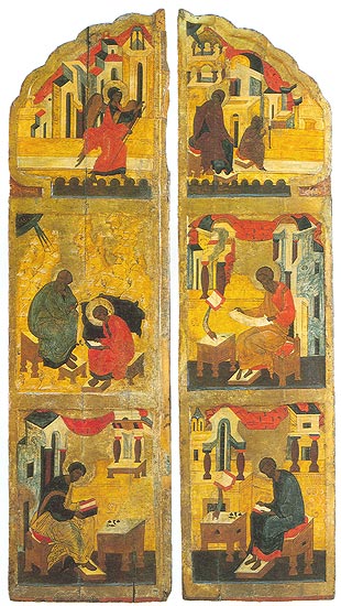 Литература: Шестаков, с. 29—46; Лыткин, отдел 1, с. 26; Лукомский, с. 80; Лазарев 1954, с. 264; Демина, с. 49—51; Бочаров, Выголов 1979, с. 53; Вздоронов 1972, с. 45—54; Живопись вологодских земель, № 2; Рыбаков А.А. 1980, с. 12, ил. 4-5.