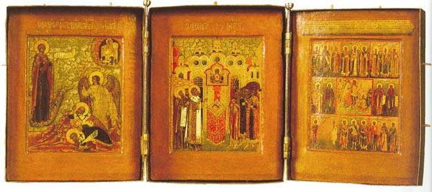 Сведений о реставрации не имеется. Ранее складень принадлежал Максиму Яковлевичу Строганову.
