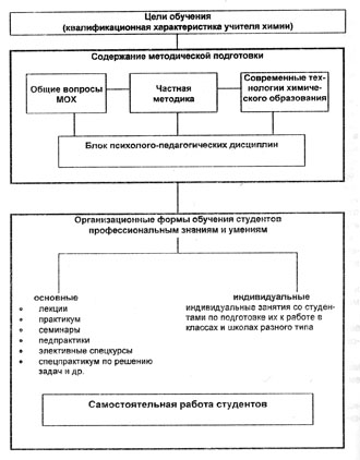 Разрешить эти противоречия и проблемы можно, только пересмотрев существующую методическую систему обучения студентов. Методологию процесса перестройки системы профессионально-методической подготовки учителя химии составили системный, интегративный и личностно-деятельностный подходы как наиболее отвечающие тенденциям развития химико-педагогического образования.