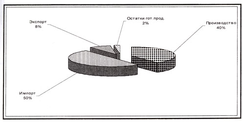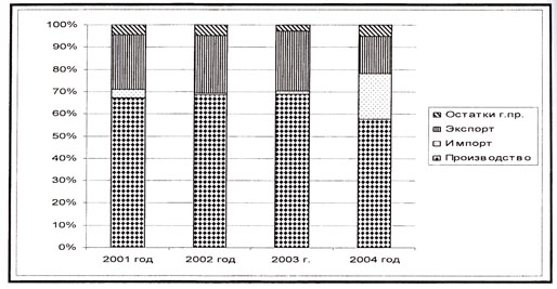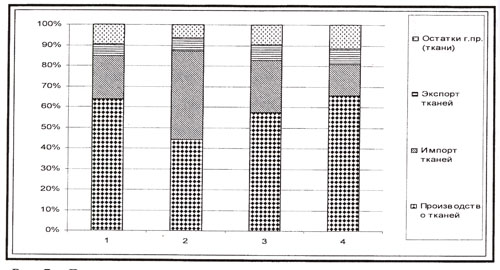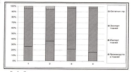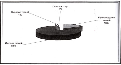 Рис. 3 – Структура российского рынка тканей (емкость) в 2004 году