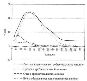 Рис. 1 – Баланс волокон различных длин, получающихся в результате гребнечесания.