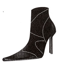 Процесс создания эскиза таков. На колодку, выбранную из базы колодок, путем копирования или импортирования накладываются и располагаются друг относительно друга в нужном порядке различные детали из базы деталей верха. Затем из базы деталей низа выбираются и располагаются относительно колодки и деталей верха каблуки или другие детали для решения низа модели. Далее, если нужно, отдельным деталям и, соответственно, модели в целом,