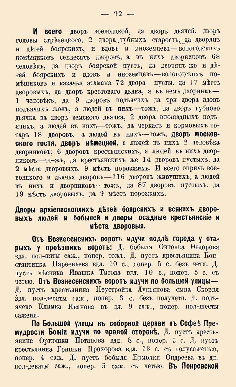 воеводцкого и дьячья дворов - 116 дворов живущих, а