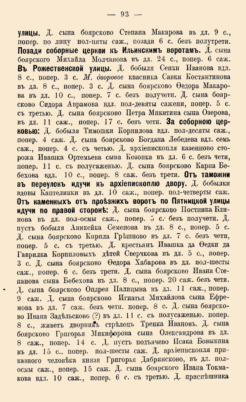 саж., попер. 8 саж., живет дворник стрелец Тренка