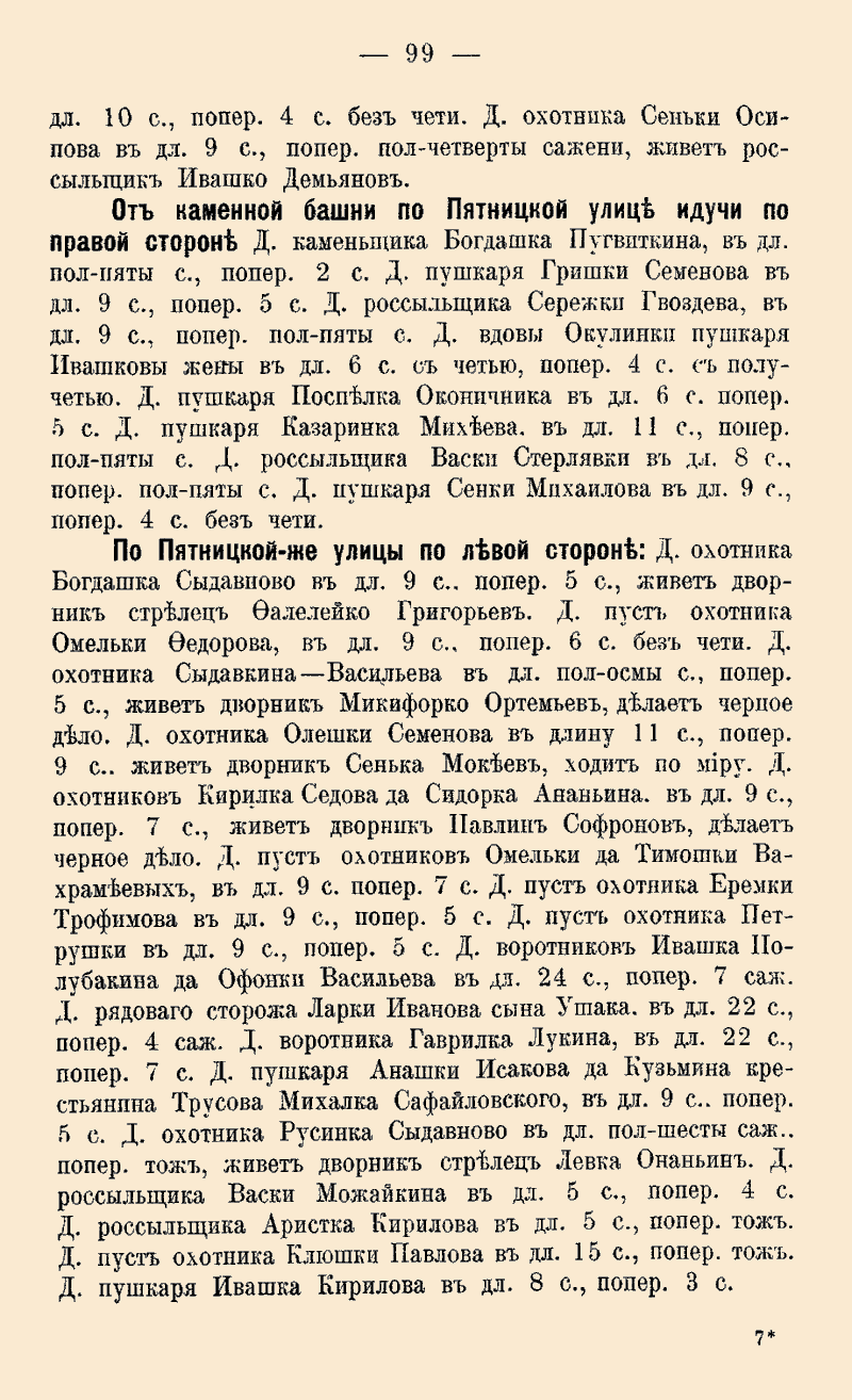 попер. 5 с., живет дворник Ивашко Савельев делает