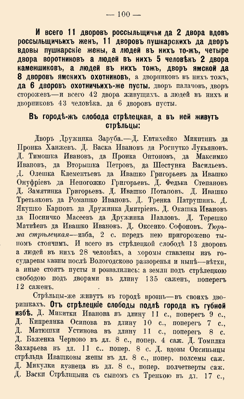 всего в стрелецкой слободе 13 дворов а людей в них