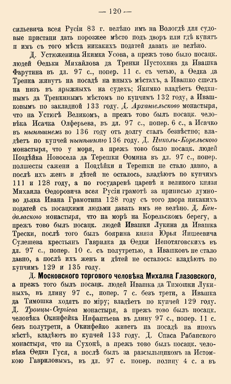 посаде на ином месте, владеют по купчей 133 году. Д.