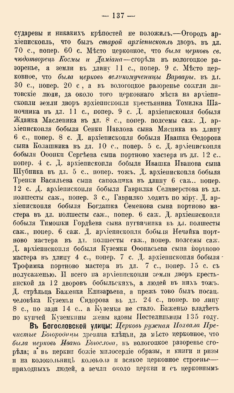 на гостине дворе, в длину 60 с., попер. 8 с., а изстари