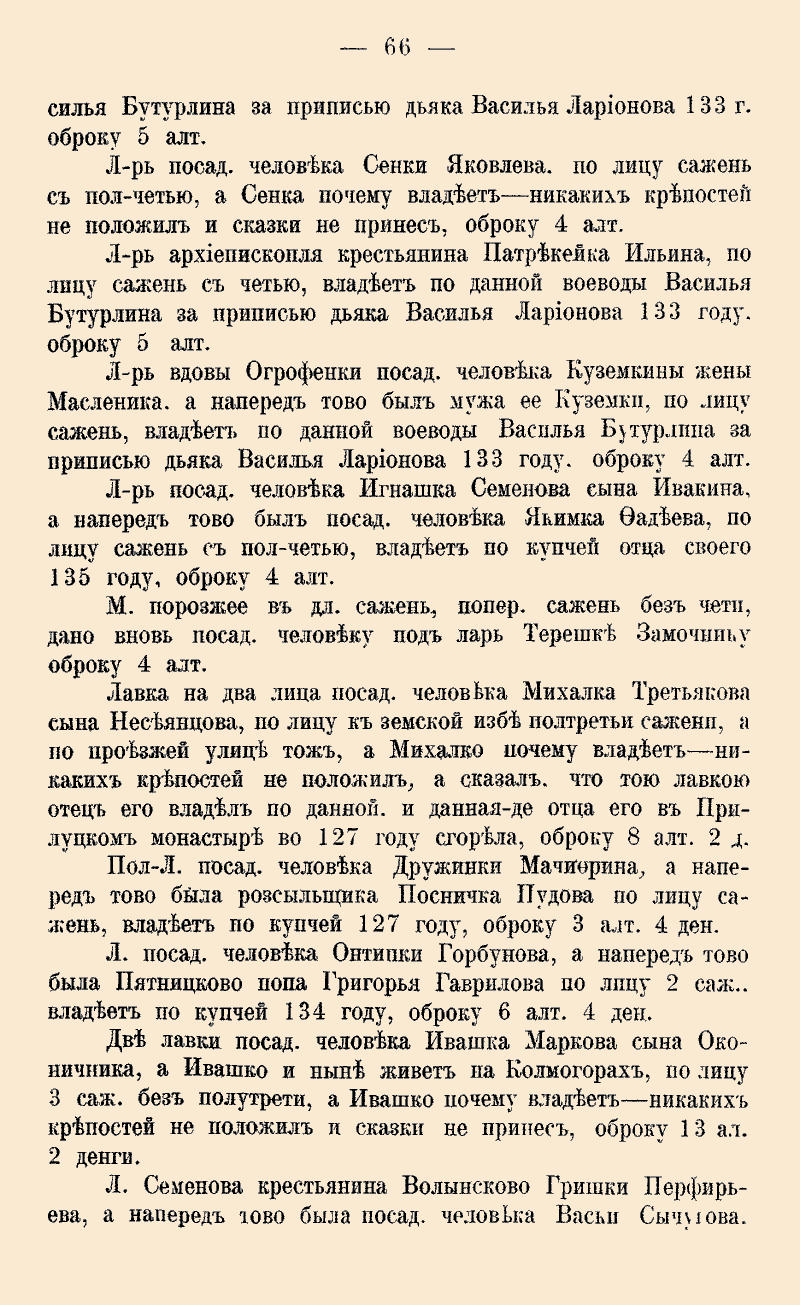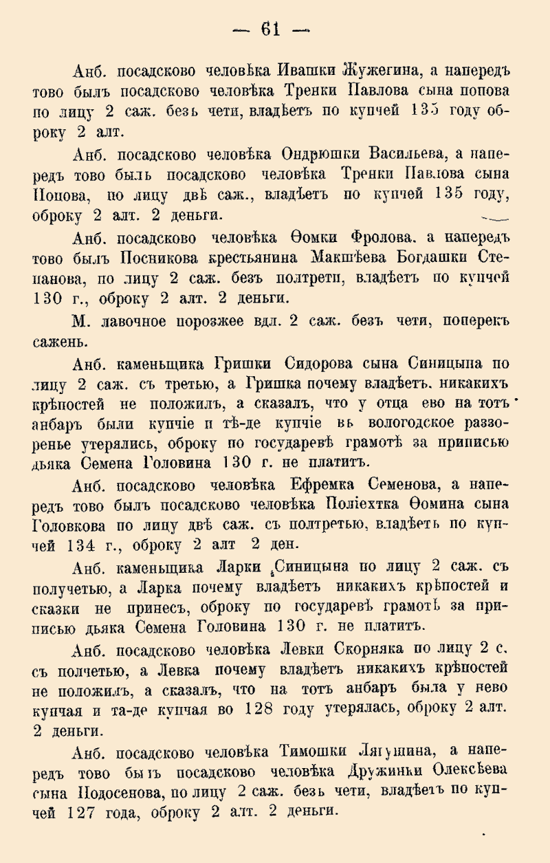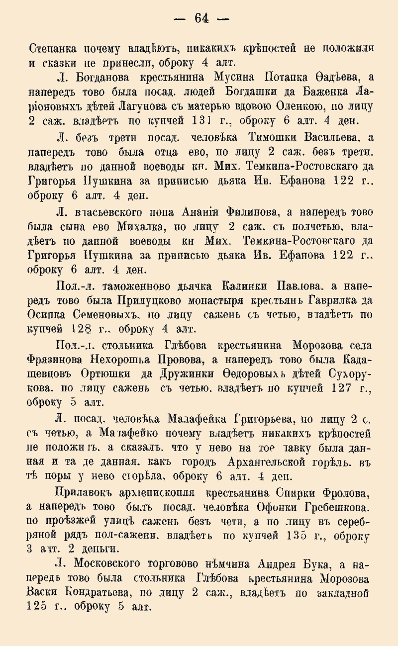 по купчей 129 году, оброку 2 алт. 4 ден.