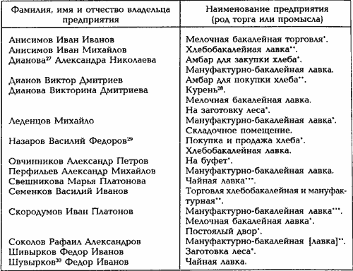 27 В документе ошибочно: «Диянова». Согласно журналу проверки торговых и промышленных предприятий и личных промысловых занятий в Михайловской волости Кадниковского уезда за 1901 г., крестьянка деревни Федоровской Ле-щевской волости Кадниковского уезда Александра Николаева Дианова также владела на станции мелочной бакалейной лавкой (ГАВО. Ф. 388. Оп. 3. Д. 9623. Л. 6 об.)