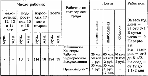 15 Там же. Ф. 393. Оп. 1. Д. 318. Л. 45 об.; Ф. 665. Оп. 1. Д. 121. Л. 6 об. ,8; Д. 17. Л. 36 об. — 37. Если в сведениях старшего фабричного инспектора Вологодской губернии датой закрытия предприятия назван 1910 г., то кадниковский уездный исправник рапортовал в Вологодский губернский статистический комитет о закрытии завода уже с 1909 г., в это время, по информации пристава 4 стана Кадниковского уезда, на нем числилось до 400 рабочих (ГАВО. Ф. 17. Оп. 1. Д. 511. Л. 42 об.; Ф. 139. Оп. 4. Д. 156. Л. 12).