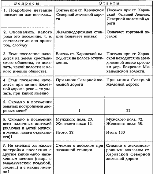 2 июля 1914 г. — Из вопросных листков Центрального статистического комитета МВД — сведения о станции Харовской и поселке при станции.