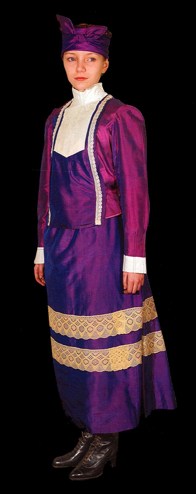 Состоит из кофты с юбкой, сшитых из шелковой тафты лилового цвета.