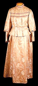 Состоит из кофты и юбки, сшитых из шелковой ткани с сиреневым отливом.