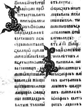 Лист рукописи "Евангелие Кошки" ( XIV век)