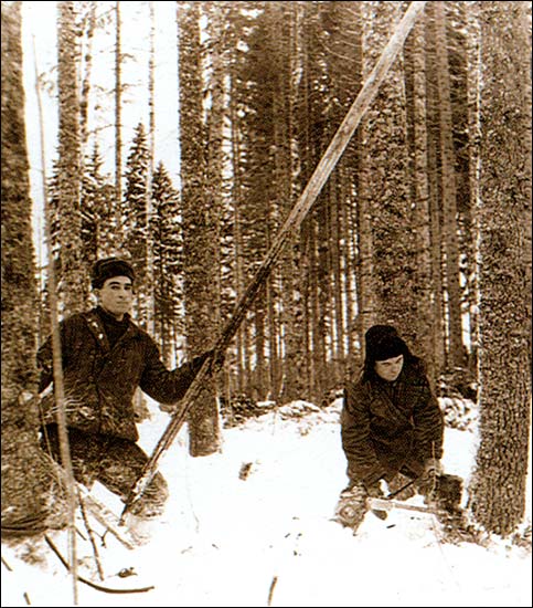 Н.И. Трутнева, раскряжевщица, депутат Вологодского областного Совета народных депутатов в 1955 г. Выработала 302 трудонормы. Тотемский леспромхоз
