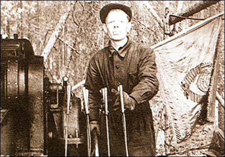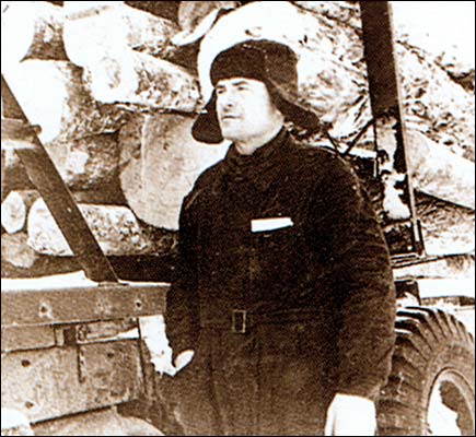 С.А. Чечулинский, бригадир малой комплексной бригады Камчугского лесопункта, за лебедкой