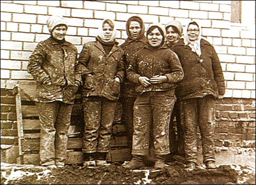 Бригада отделочников Г.П. Лапиной треста «Вологдалесстрой». г. Белозерск
