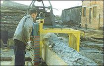 Процесс опиловки закомелистой части бревен большого диаметра перед лесопильной рамой (изобретение А.В. Стяткова)