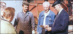 Рабочее совещание возле ремонтно-механических мастерских: начальник