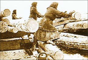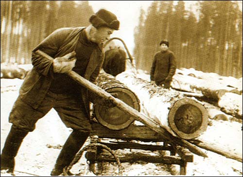 Организация лесозаготовок была следующая. Ежегодно лесовладельцами проводились торги по продаже леса на корню, на которых лесопромышленники (их представители - приказчики) покупали необходимые им объемы древесины. Далее до наступления зимнего сезона лесопромышленники заключали договоры на проведение лесозаготовительных работ с артелью (артельным старостой) сезонных рабочих, состоявших преимущественно из местных крестьян. С наступлением холодов крестьяне уезжали на собственных лошадях или уходили пешком со своими инструментами (двуручной пилой и топором) на заготовку леса. Первым делом они сооружали временную избушку (стан) для ночлега и готовили дорогу для вывозки леса, затем приступали к его рубке. Основной формой организации труда в лесу была артель, которую возглавлял артельный староста. Крестьяне в артели работали на своих лошадях в качестве возчиков, а безлошадные производили заготовку леса (валку, обрубку сучьев и раскряжевку на сортименты).