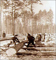 Рост промышленного производства и строительство железных дорог в начале двадцатого века вызвал дополнительный спрос на древесину. Однако при этом находил сбыт преимущественно крупномерный хвойный лес. По существующим в то время инструкциям за пиловочные деревья принимались только те, из которых можно было выпилить бревна длиной 7,1 метра и толщиной в верхнем отрубе 26,6 см. При этом остальная часть дерева диаметром менее 26 см в лучшем случае использовалась на балансы или дрова, в худшем оставалась в лесу на месте валки дерева. В среднем с десятины вырубалось только 24 наиболее крупных дерева. Сплошные рубки в то время проводились только на 30 процентах лесных площадей, отводимых в рубку.