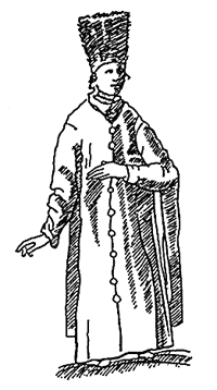 «Когда древнерусский боярин в широком охабне и высокой горлатной шапке выезжал со двора верхом на богато убранном ногайском аргамаке, чтобы ехать в Кремль челом ударить государю, всякий встречный человек меньшего чину по костюму, посадке и самой физиономии всадника видел, что это действительно боярин, и кланялся ему до земли или в землю, как требовал обычай, потому что он — столп, за который весь мир держится. Появись он на улице кой-как запросто, в растрепанном виде, с легкомысленными смеющимися глазами, он только неприятно смутил бы встречных».