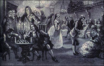 В 1718 г. Петр I издал указ об ассамблеях, который нанес окончательный удар старым правам. Зимой три раза в неделю по очереди в домах обеспеченных людей проводились собрания — ассамблеи для забав и для дела, причем в них в обязательном порядке должны были принимать участие и женщины. В Петербурге обер-полицмейстер, а в Москве — комендант назначали, в чьем доме будет следующая ассамблея.