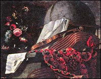 Фрагмент картины Фиораванти. «Натюрморт с глобусом и музыкальными инструментами». 1650 г.
