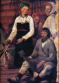 По сравнению с более ранними периодами в XIX в. в крестьянскую одежду проникают фабричные материи, ситцевые и кумачовые косоворотки, жилеты, поддевки и готовая обувь. Интересно, что фабричные материи и покупные товары теперь надевали лишь в праздники. Будничная одежда сохраняла свои покрои и домотканые материи.